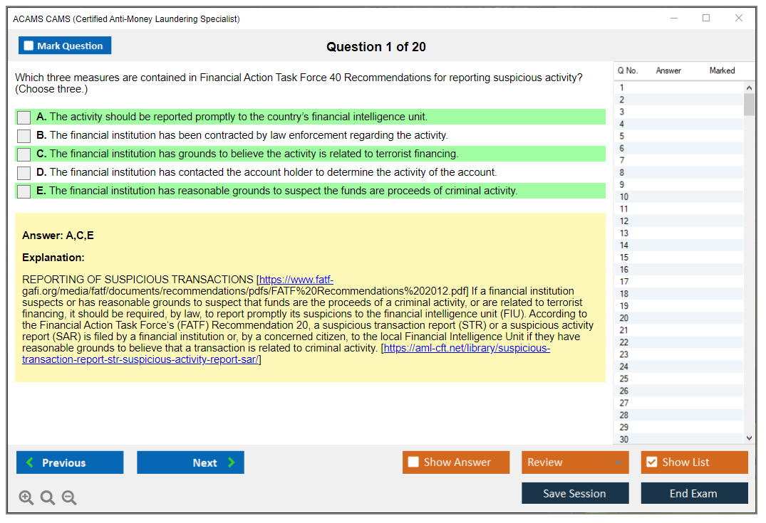 The ACAMS CAMS (Certified Anti-Money Laundering Specialist) Exam is a globally recognized certification for professionals in the anti-money laundering (AML) and financial crime prevention sectors. It validates expertise in AML detection, prevention, and enforcement.