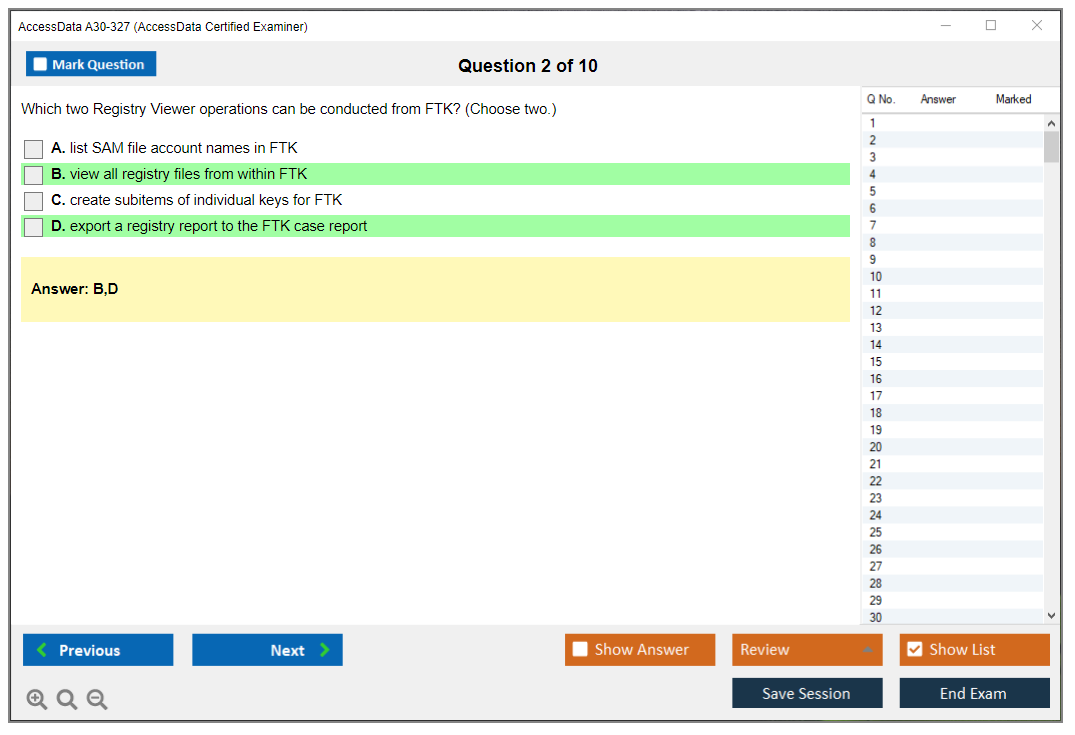 The question format of the AccessData A30-327 exam includes multiple-choice questions, scenario-based questions, and practical exercises.