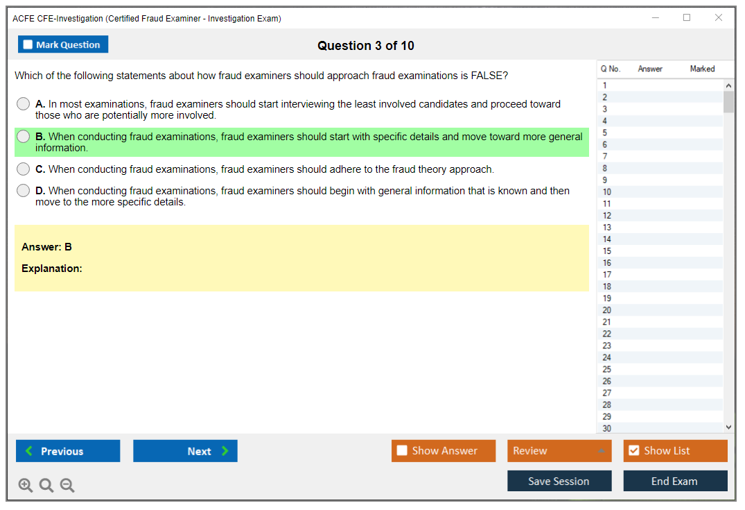 The ACFE CFE-Investigation (Certified Fraud Examiner - Investigation) Exam is a certification exam designed to assess a candidate's knowledge and skills in fraud investigation. It is one of the four sections of the CFE Exam, which also includes Financial Transactions & Fraud Schemes, Law, and Fraud Prevention & Deterrence.