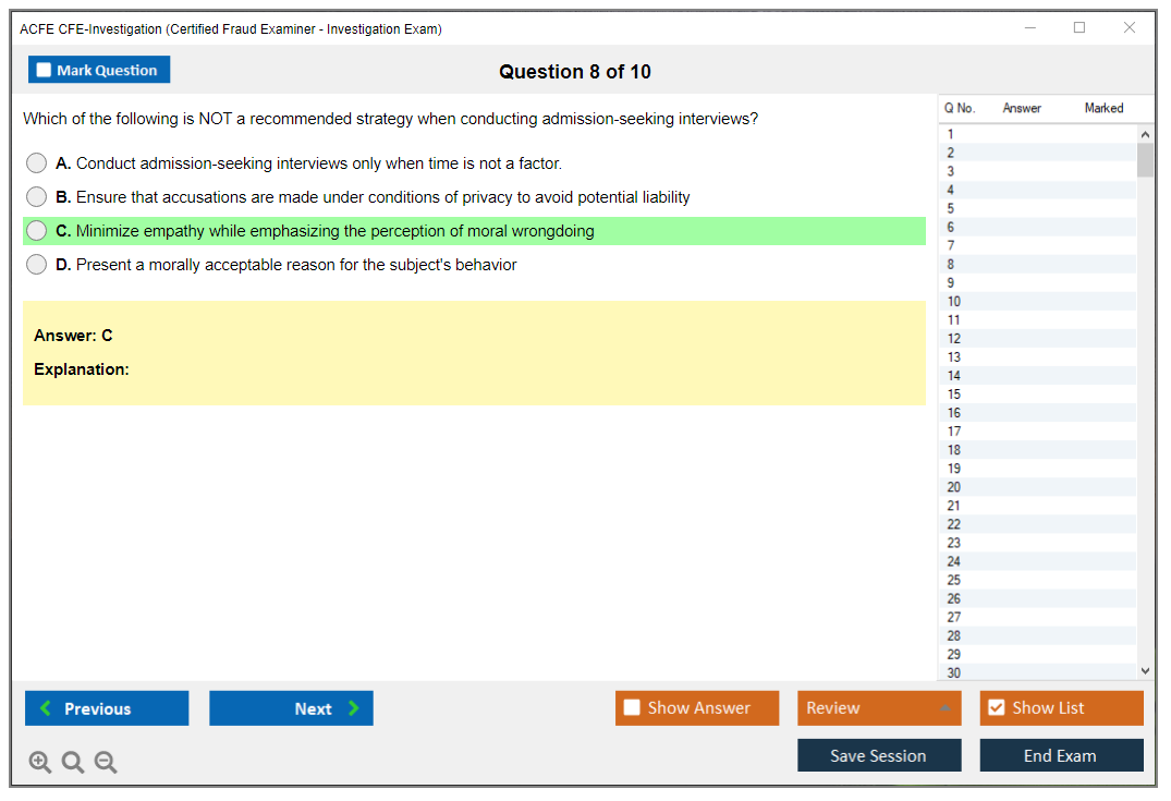 What are the Sample Questions of ACFE CFE-Investigation Exam?