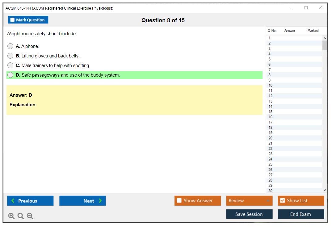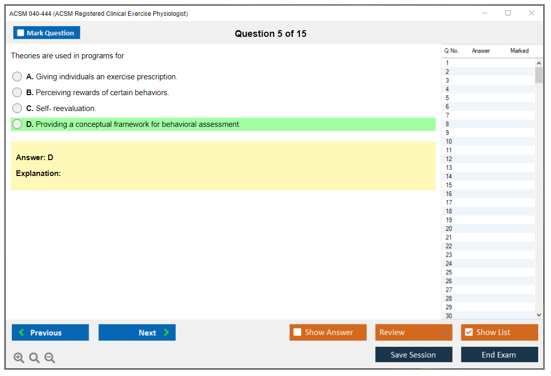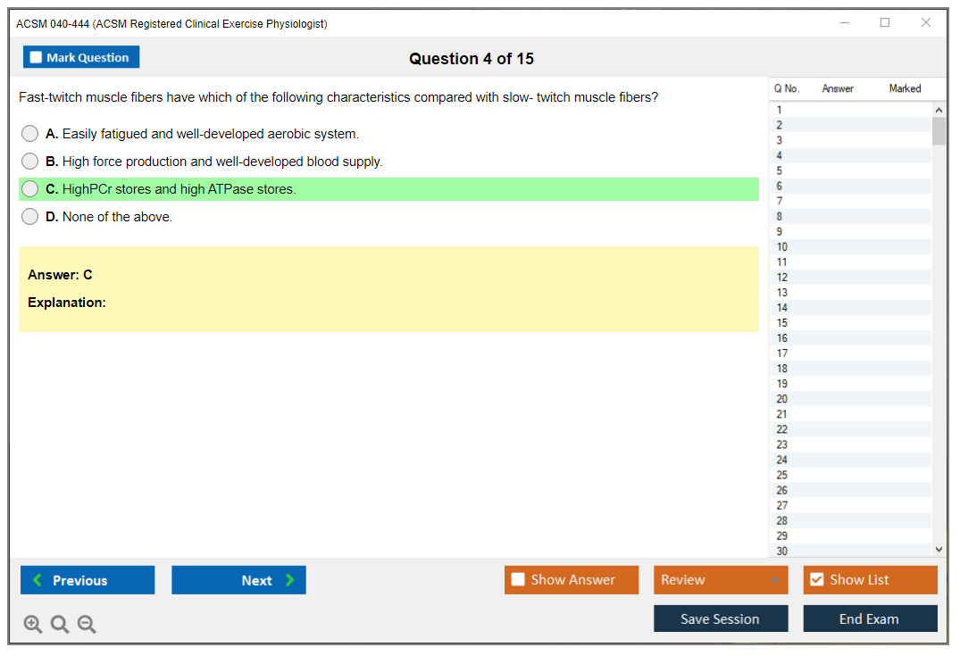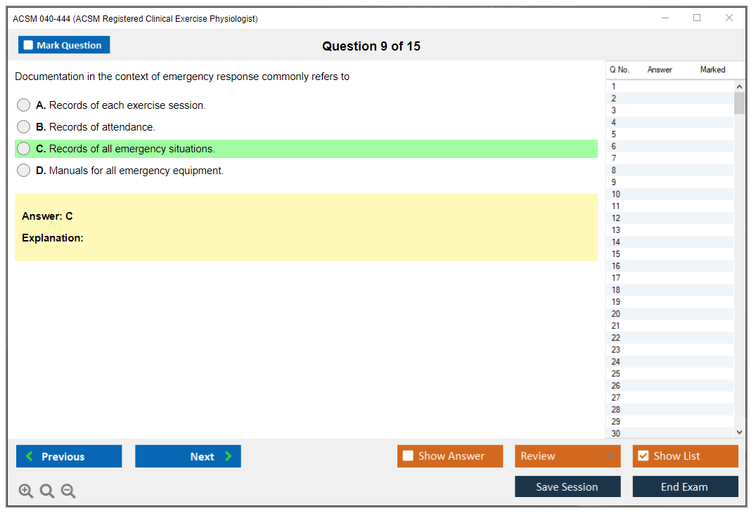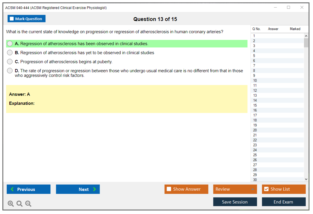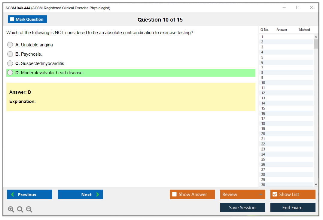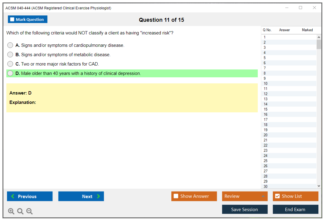 The ACSM 040-444 (ACSM Registered Clinical Exercise Physiologist) Exam is designed for individuals who work with clients with medically controlled diseases and health conditions. It focuses on advanced knowledge in exercise physiology and the ability to apply exercise principles to clients with chronic diseases and conditions.