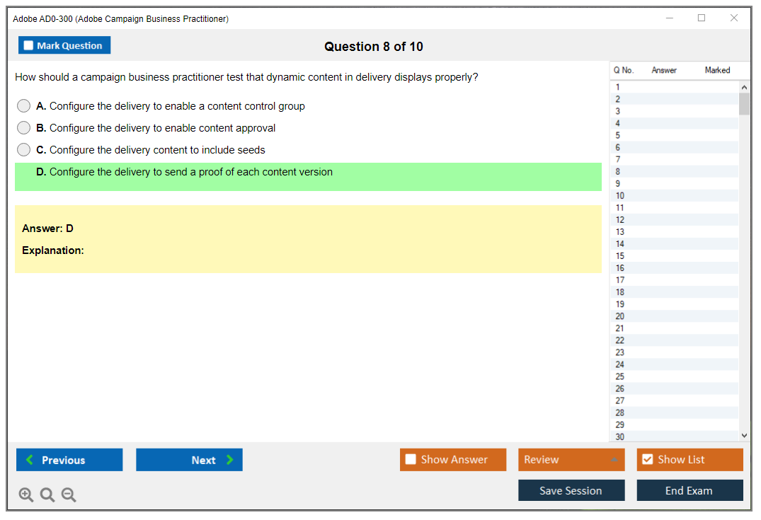 The Adobe AD0-300 exam focuses on the proficiency of candidates in managing Adobe Campaign, including campaign management, data management, and reporting. It is aimed at professionals who use Adobe Campaign in their daily work.