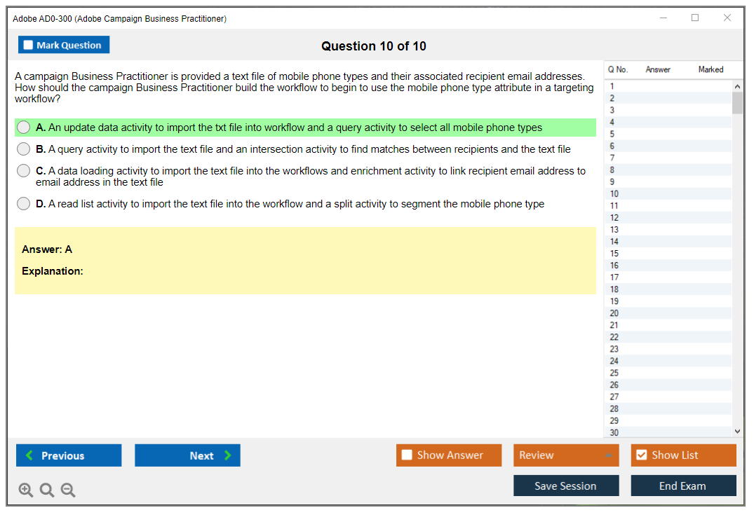 The Adobe AD0-300 (Adobe Campaign Business Practitioner) exam is designed to validate the skills and knowledge of individuals in using Adobe Campaign, a marketing automation software. It assesses the ability to manage and execute campaigns, work with data, and create reports.