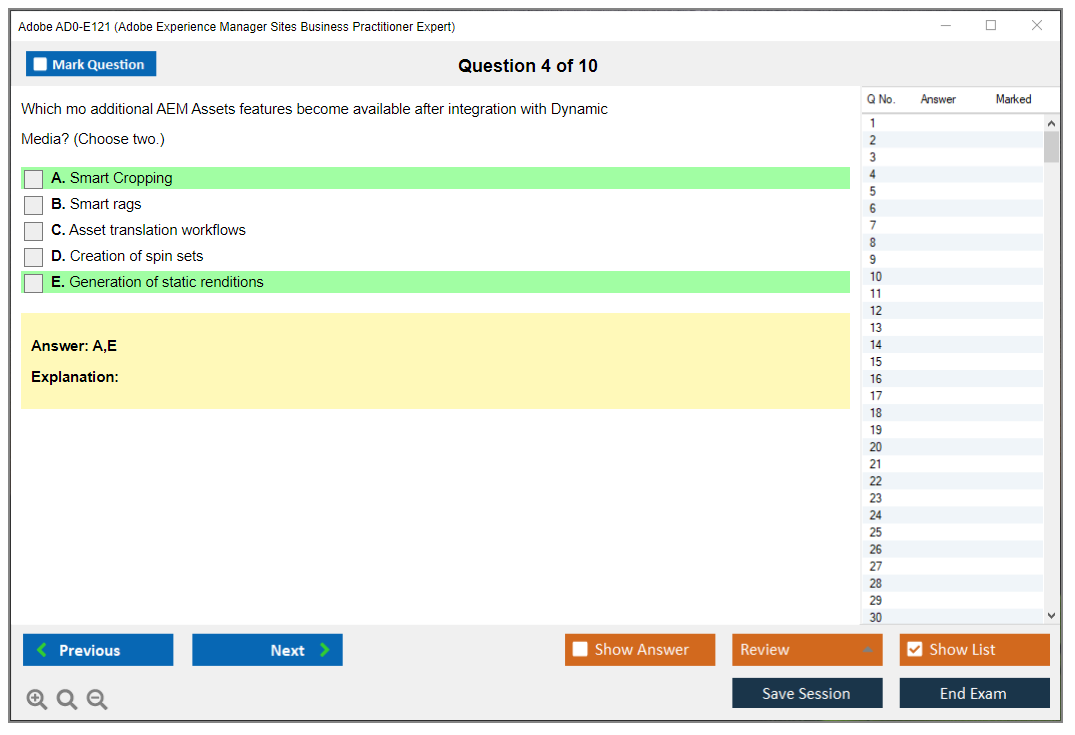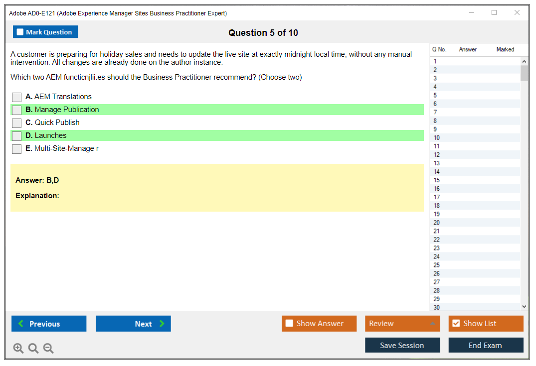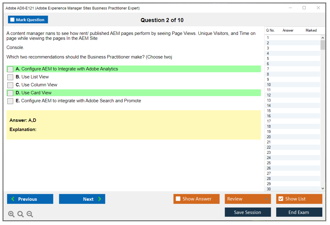 The question format of the Adobe AD0-E121 Exam includes multiple-choice and multiple-select questions.