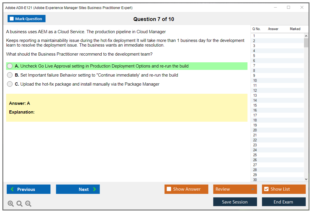 The Adobe AD0-E121 Exam is an evaluation for individuals aiming to prove their expertise in Adobe Experience Manager Sites. This certification demonstrates the candidate's proficiency in managing AEM Sites projects and their ability to translate business needs into AEM solutions.