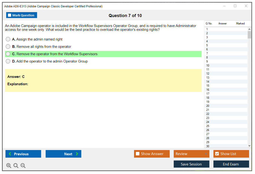 The Adobe AD0-E313 Exam is a certification test that assesses the proficiency of developers in using Adobe Campaign Classic. It covers various aspects such as campaign management, data management, workflows, and optimization techniques.