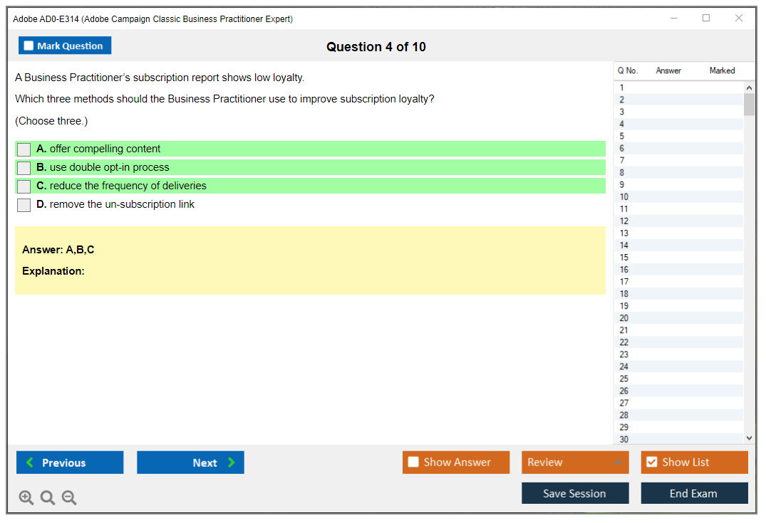 Note: Adobe AD0-E314 (Adobe Campaign Classic Business Practitioner Expert) will not receive any new updates.
