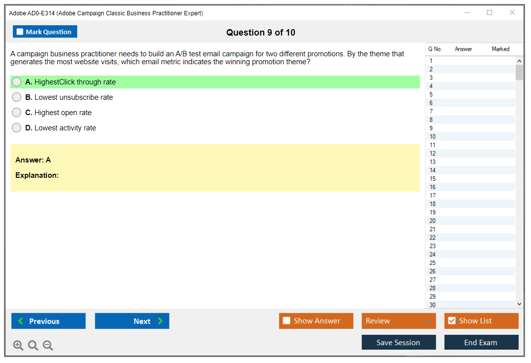 The Adobe AD0-E314 (Adobe Campaign Classic Business Practitioner Expert) Exam is designed for individuals who have expertise in Adobe Campaign Classic, focusing on campaign management, marketing automation, and data management.