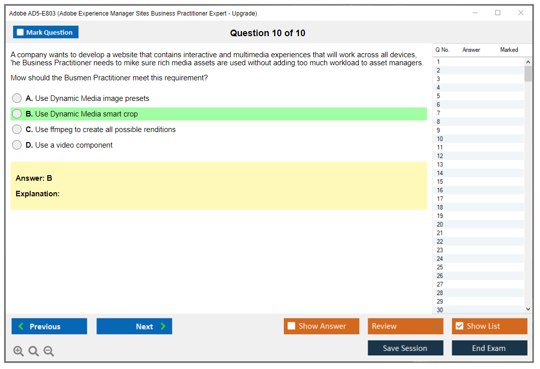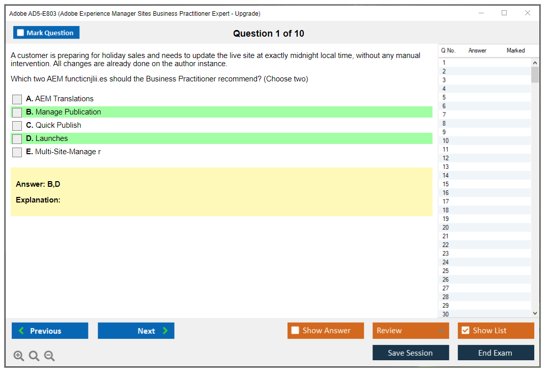 The Adobe AD5-E803 (Adobe Experience Manager Sites Business Practitioner Expert - Upgrade) exam is an advanced-level certification test for professionals who are already certified in Adobe Experience Manager Sites and wish to validate their expertise at a higher level.