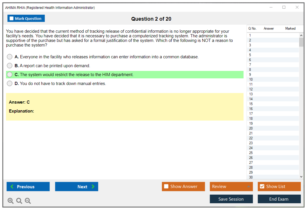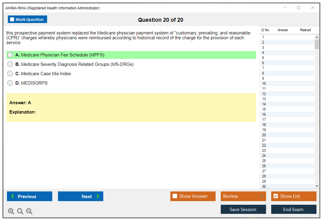 The question format of the AHIMA RHIA Exam is multiple-choice.