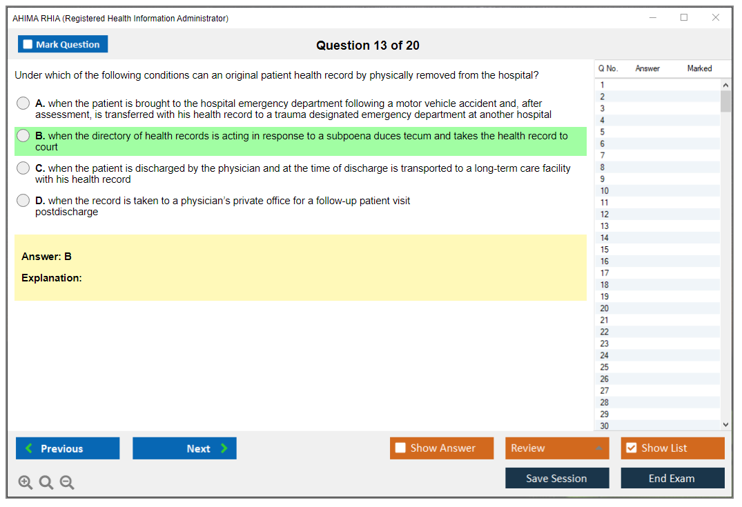 Sample questions for the AHIMA RHIA Exam can be found on the official AHIMA website and in various study guides and practice exam books.