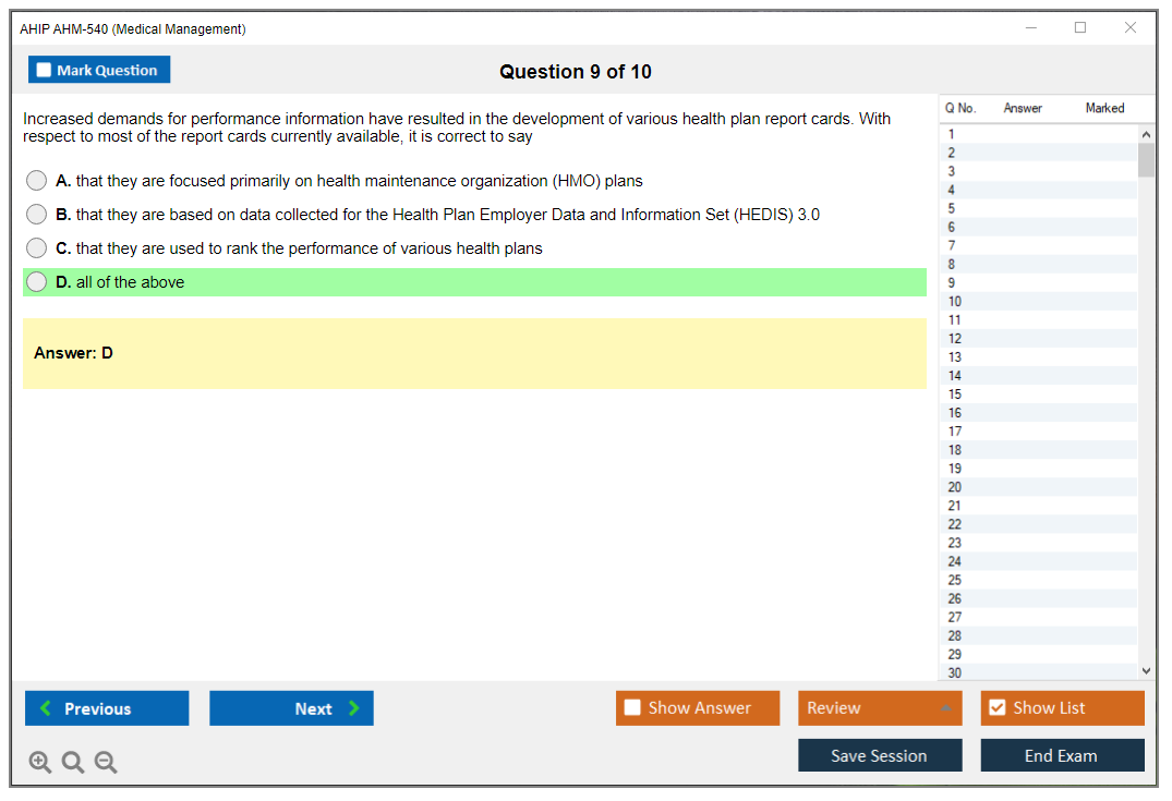 The AHM-540 Dumps from DumpsBoss are top-notch! The material is well-structured and covers all necessary topics in-depth. Thanks to DumpsBoss, I felt confident and well-prepared on exam day. A must-have resource!