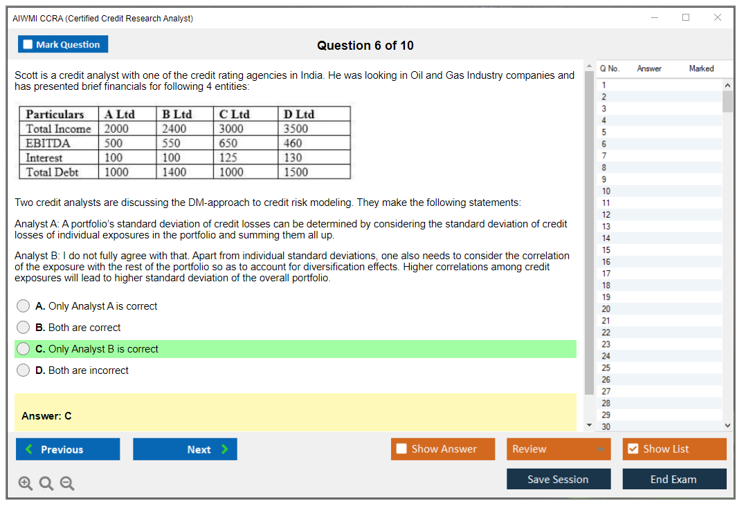 The AIWMI CCRA (Certified Credit Research Analyst) Exam is a globally recognized certification program designed to equip professionals with the skills and knowledge necessary for credit research and analysis. It is offered by the Association of International Wealth Management of India (AIWMI).