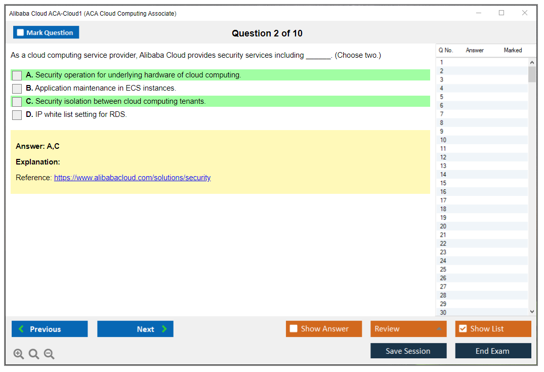 The question format of the Alibaba Cloud ACA-Cloud1 Exam includes multiple-choice and multiple-response questions.