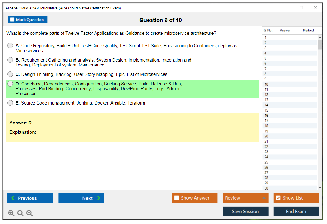 The Alibaba Cloud ACA-CloudNative Exam assesses your ability to design, implement, and manage cloud-native applications using Alibaba Cloud services. It covers a range of topics including container orchestration, microservices architecture, and DevOps practices.