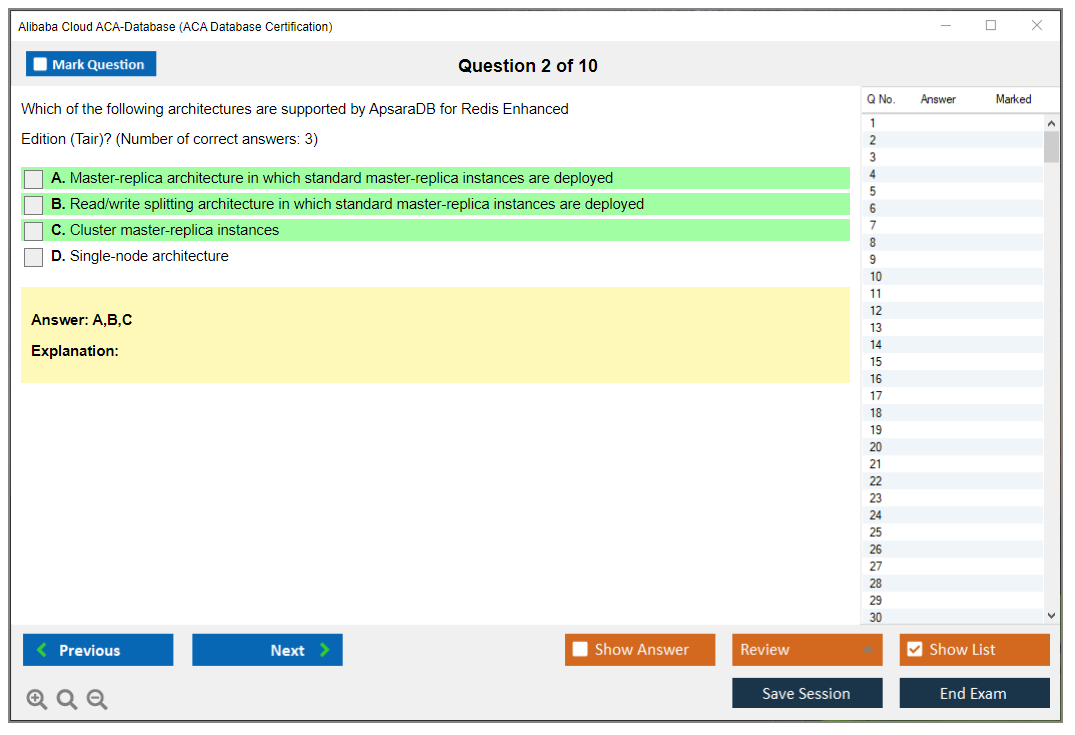 The question format of the Alibaba Cloud ACA-Database Exam includes multiple-choice questions, true/false questions, and scenario-based questions.