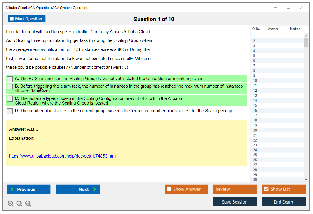 Sample questions for the Alibaba Cloud ACA-Operator Exam can be found on the official Alibaba Cloud certification page or through various online study resources and practice exams.