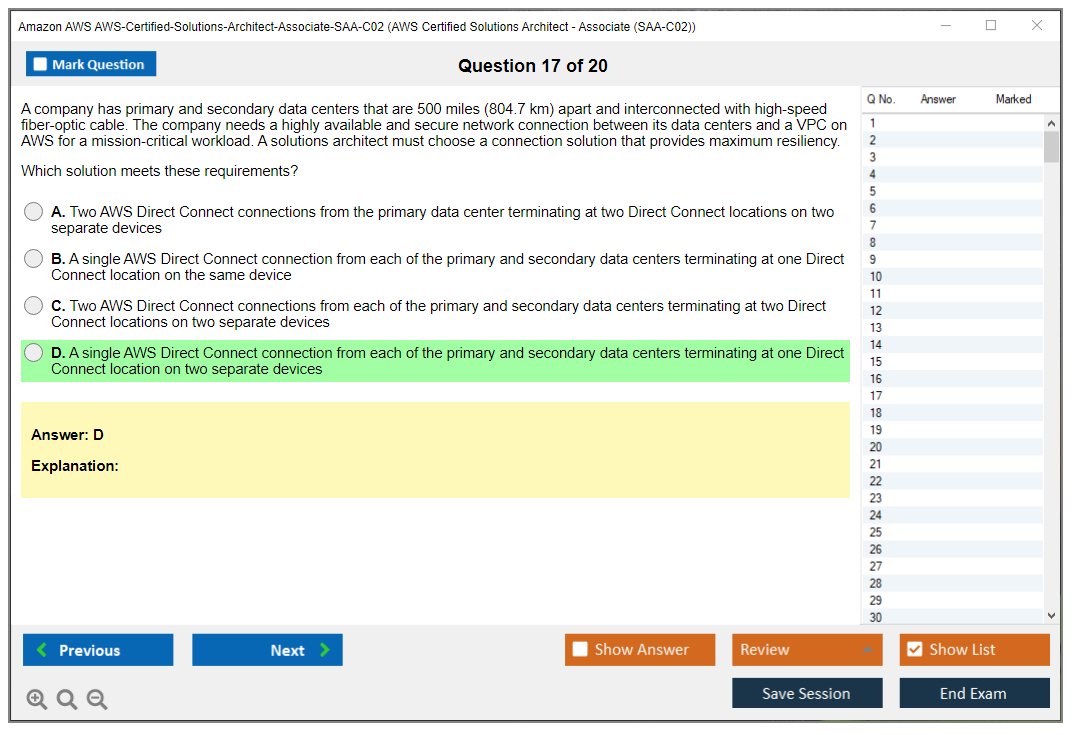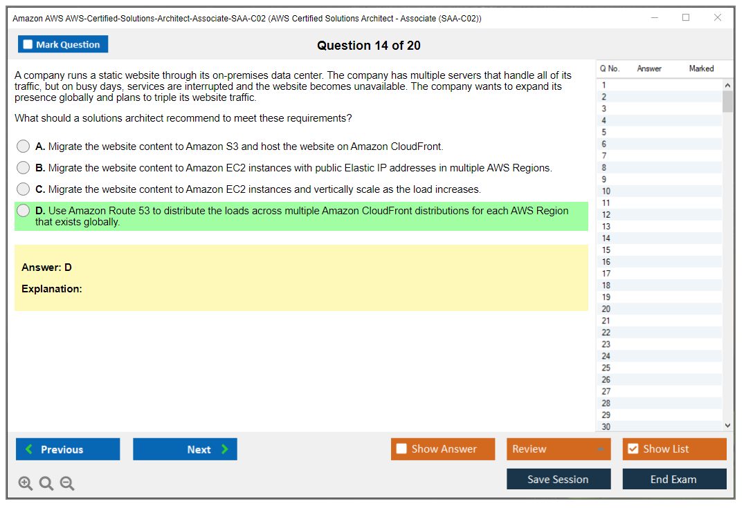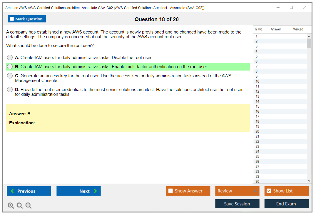 The AWS SAA practice test at DumpsBoss is a fantastic tool for exam preparation. With its comprehensive questions and detailed explanations, I felt well-prepared for the actual AWS certification exam.