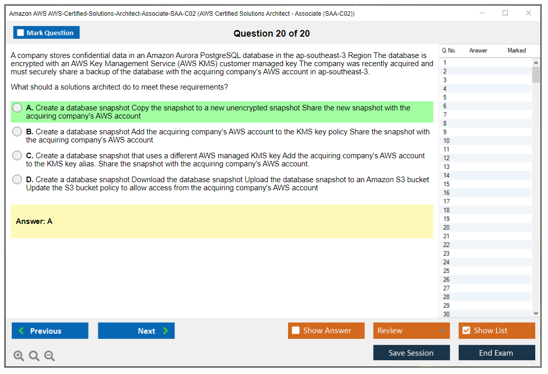 DumpsBoss offers an excellent saa-c02 practice test that helped me ace my AWS certification! The detailed explanations and real-exam simulations made studying a breeze. Highly recommend it to all aspiring AWS professionals.