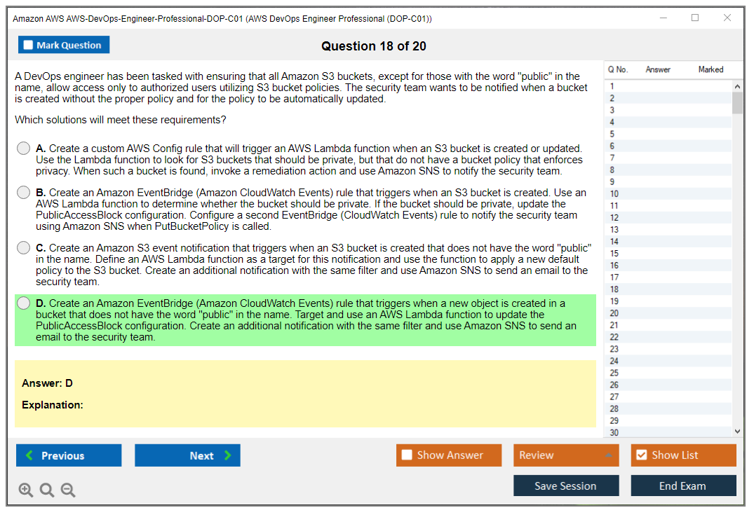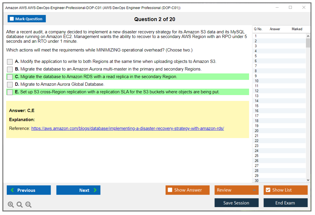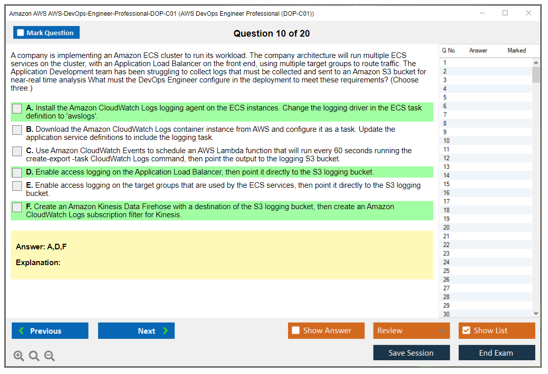 Sample questions for the Amazon AWS Certified DevOps Engineer - Professional (DOP-C01) exam can be found on the official AWS certification website or through various third-party study guides and practice exams.
