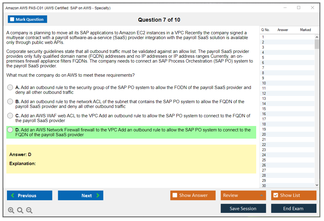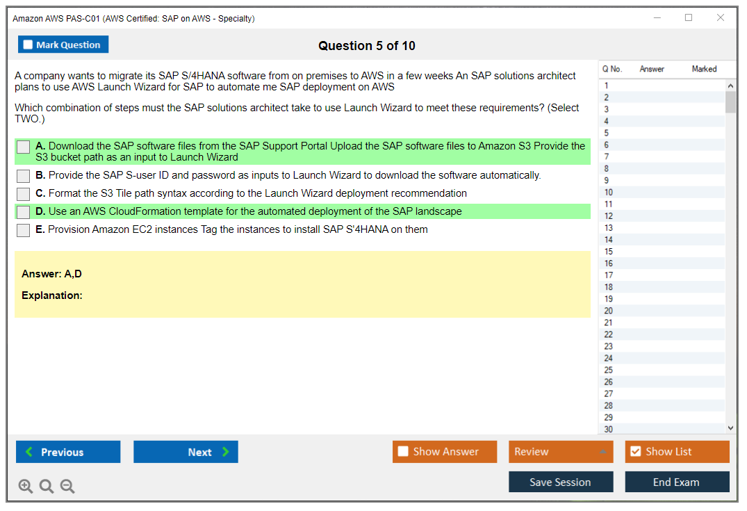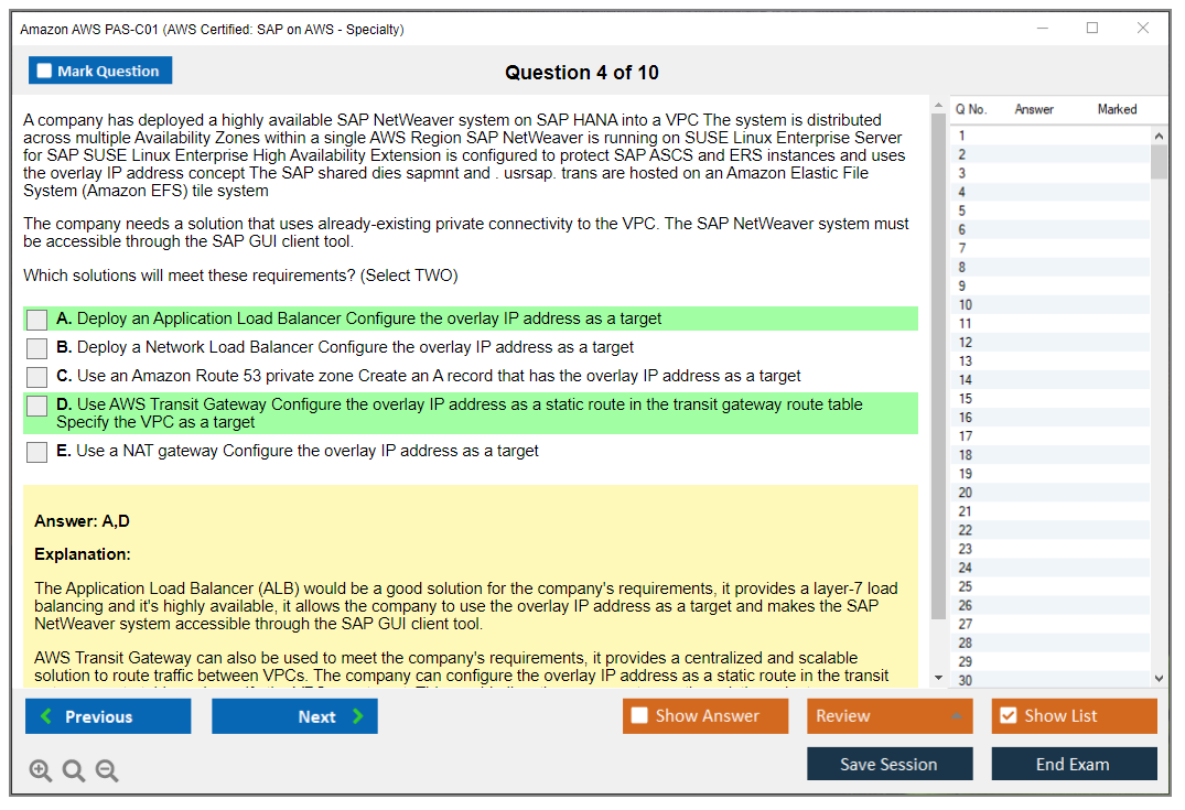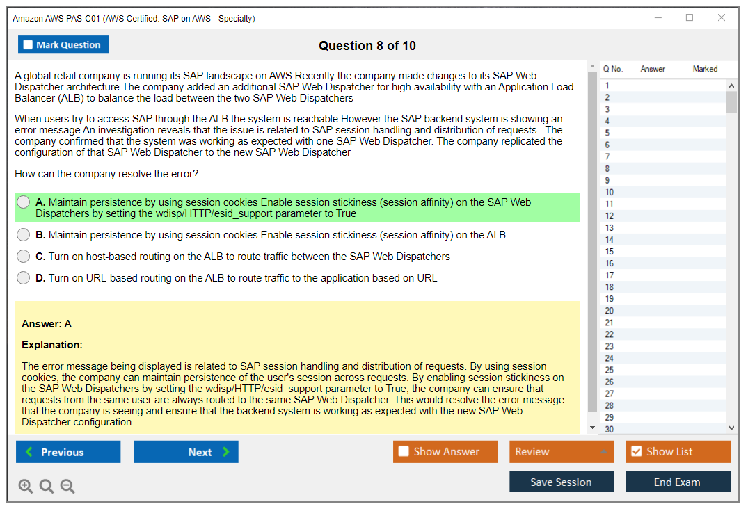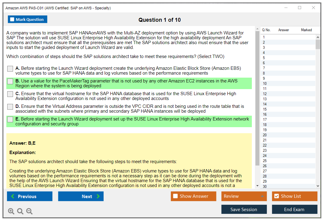 The Amazon AWS PAS-C01 (AWS Certified: SAP on AWS - Specialty) exam is designed to validate the expertise of individuals in deploying, managing, and operating SAP workloads on AWS. It focuses on the candidate's ability to design and implement SAP solutions that are highly available, fault-tolerant, and scalable on the AWS platform.