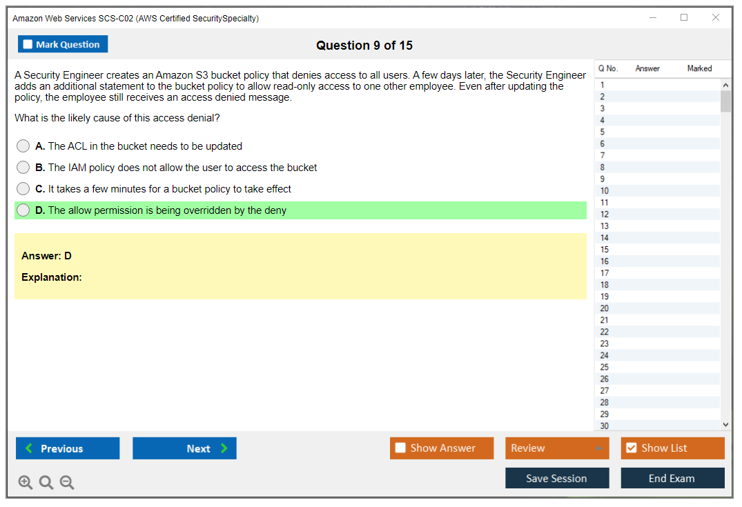 The Amazon Web Services SCS-C02 (AWS Certified Security - Specialty) exam is designed to validate an individual's expertise in securing data and workloads in the AWS Cloud. It covers a wide range of security topics including data protection, identity and access management, infrastructure security, logging and monitoring, and incident response.