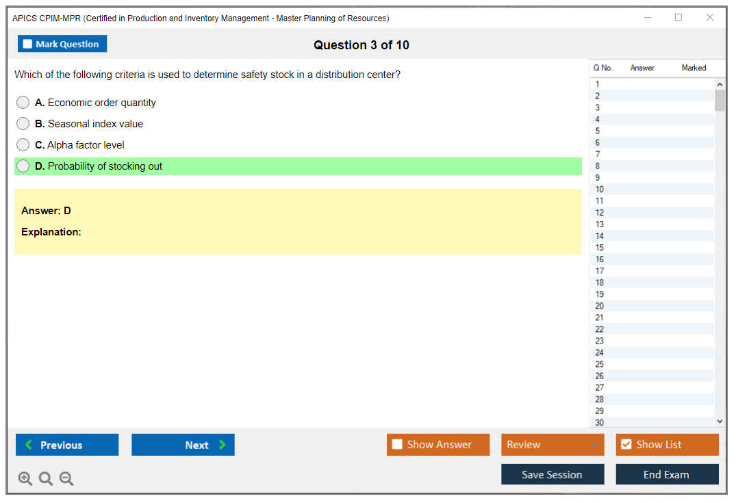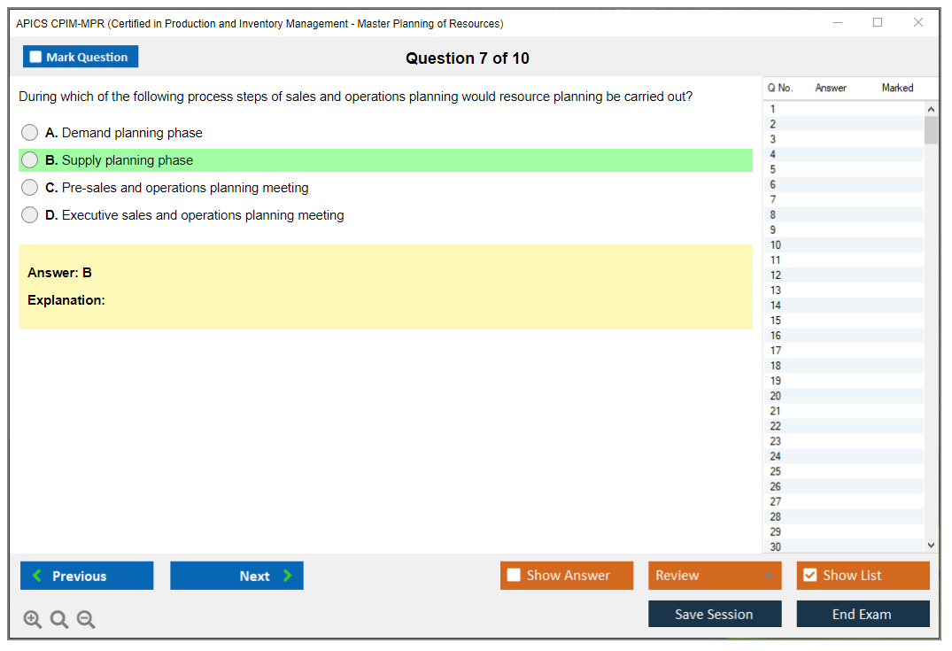The APICS CPIM-MPR (Certified in Production and Inventory Management - Master Planning of Resources) Exam is a certification exam that focuses on the principles and practices of production and inventory management. It is designed to validate the knowledge and skills of professionals in the field of supply chain and operations management.