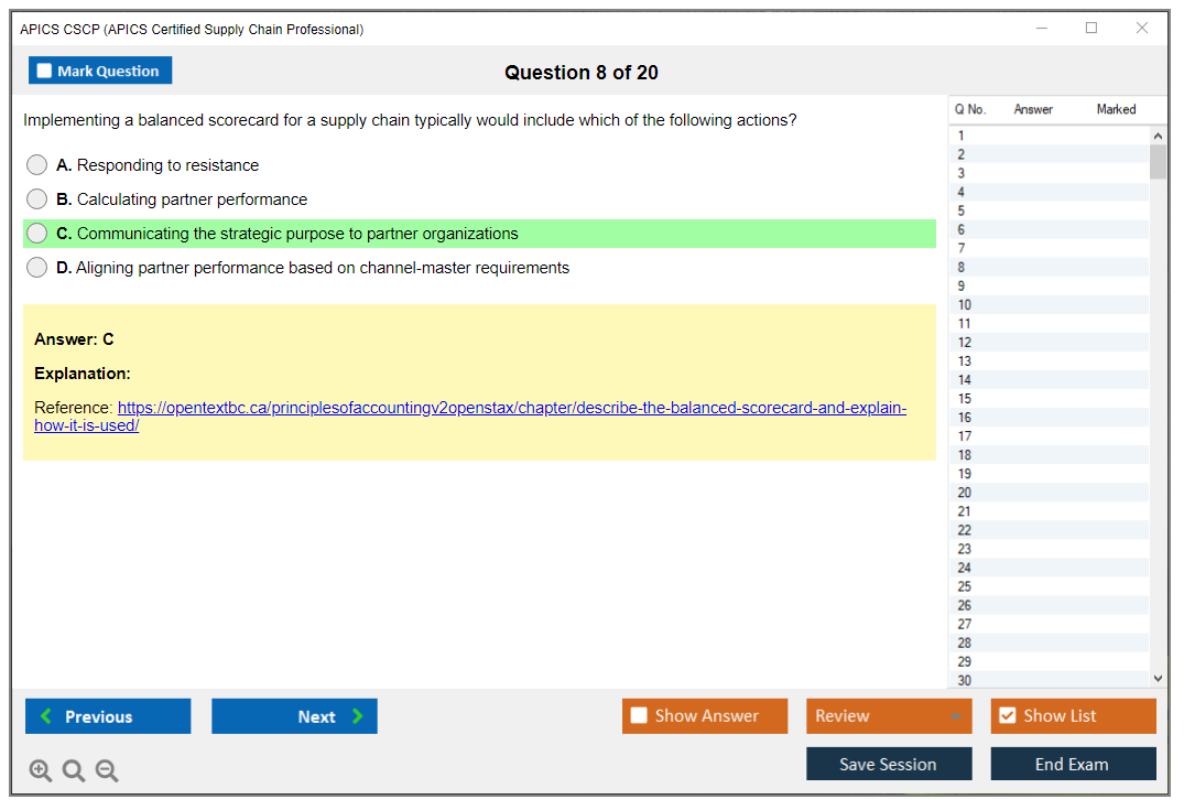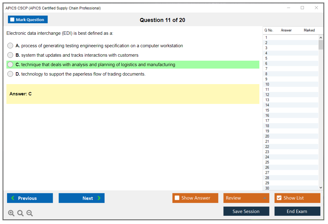The APICS CSCP exam is a comprehensive assessment that evaluates a candidate's expertise in supply chain management. It is recognized globally and is intended for professionals who want to demonstrate their knowledge and skills in managing and optimizing supply chains.