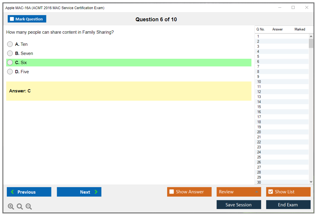 The question format of the Apple MAC-16A Exam includes multiple-choice questions, true/false questions, and scenario-based questions.