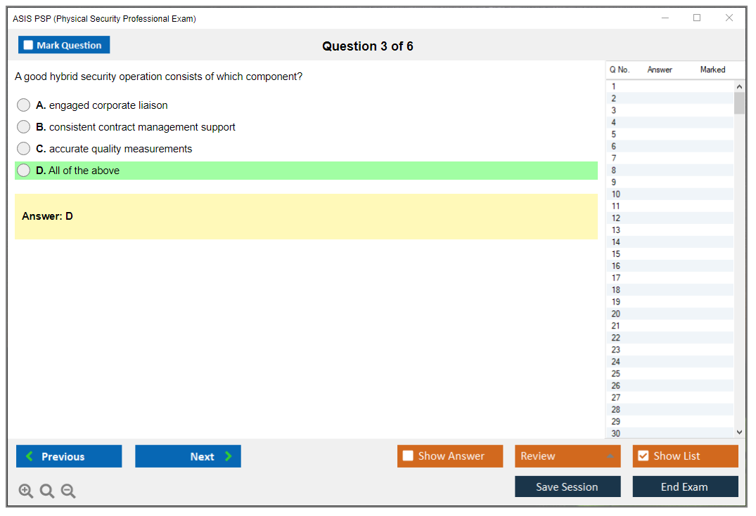 The question format of the ASIS PSP Exam is multiple-choice.