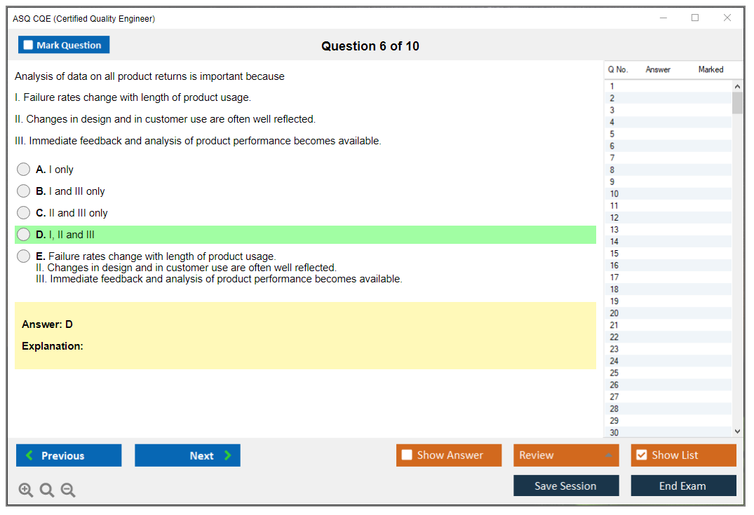 The ASQ CQE Exam is a professional certification exam designed to validate the expertise of quality engineers. It is administered by the American Society for Quality (ASQ) and evaluates a candidate's ability to apply quality engineering principles and practices.