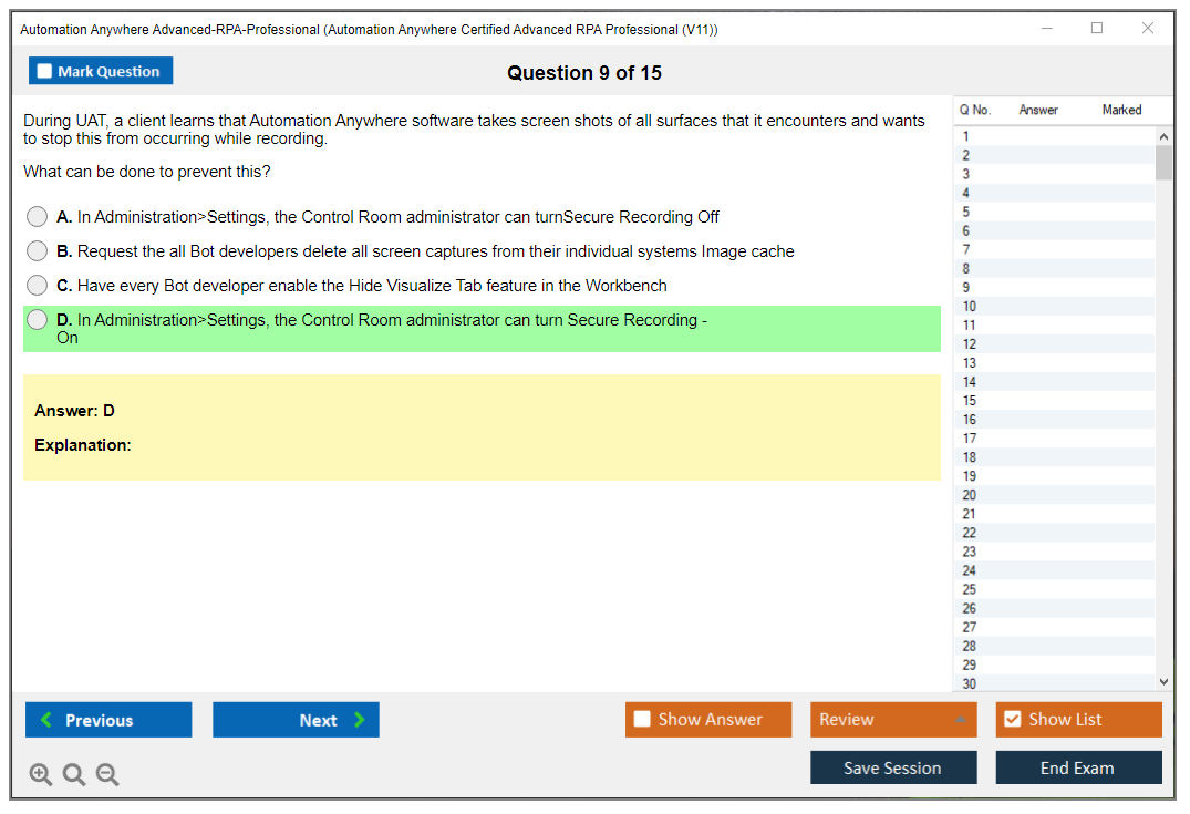 The Automation Anywhere Advanced-RPA-Professional exam is a certification test that assesses an individual's expertise in automating business processes using Automation Anywhere's RPA platform. It is aimed at professionals who have advanced knowledge and experience with Automation Anywhere tools and want to validate their skills.