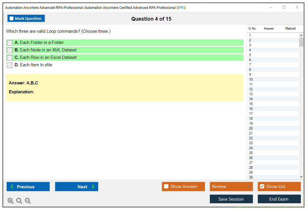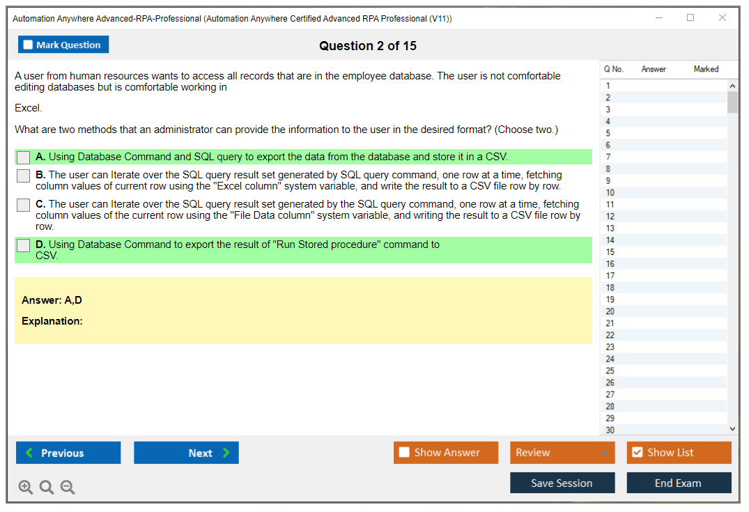 What is the Question Format of Automation Anywhere Advanced-RPA-Professional Exam?