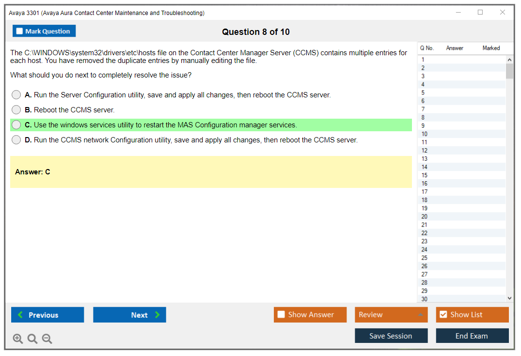 The Avaya 3301 exam, also known as Avaya Aura Contact Center Maintenance and Troubleshooting, assesses a candidate's ability to maintain and troubleshoot Avaya Aura Contact Center solutions.