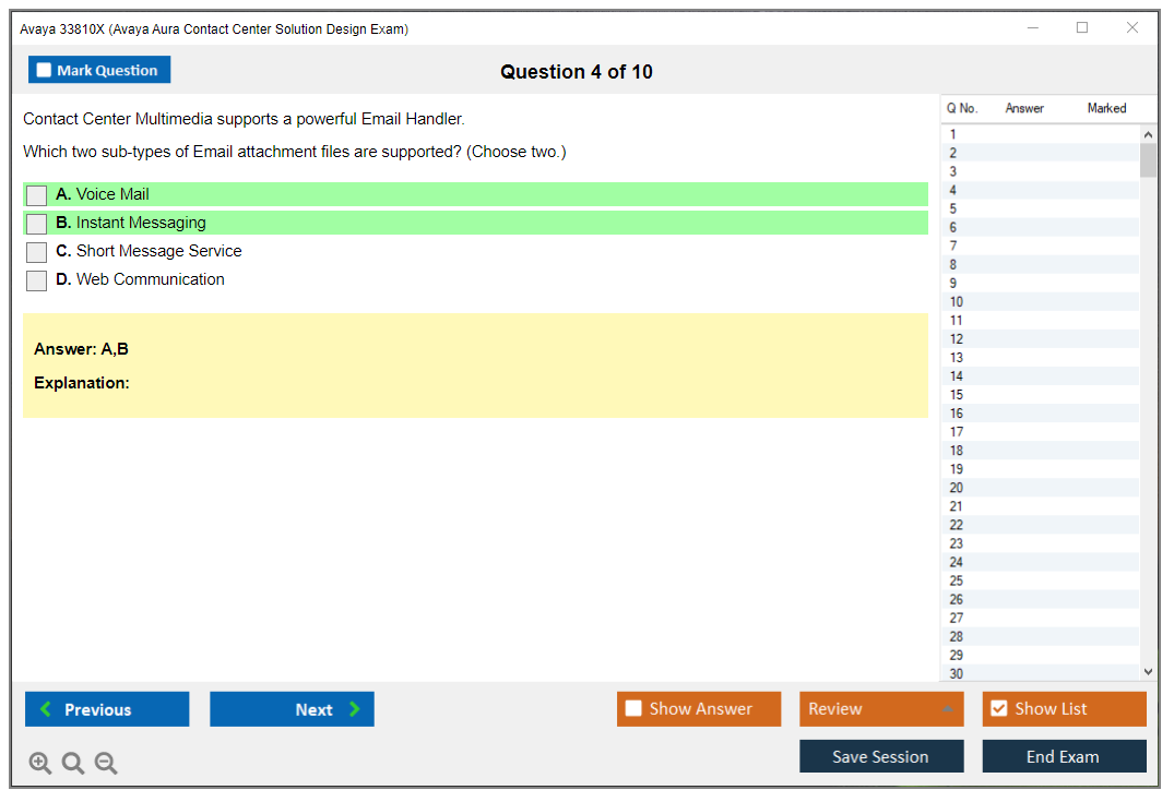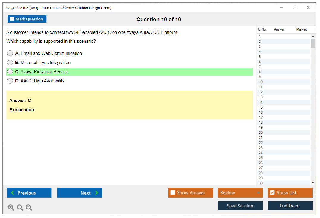 The Avaya 33810X (Avaya Aura Contact Center Solution Design Exam) is a certification exam designed to validate the skills and knowledge of individuals in designing and implementing Avaya Aura Contact Center solutions.
