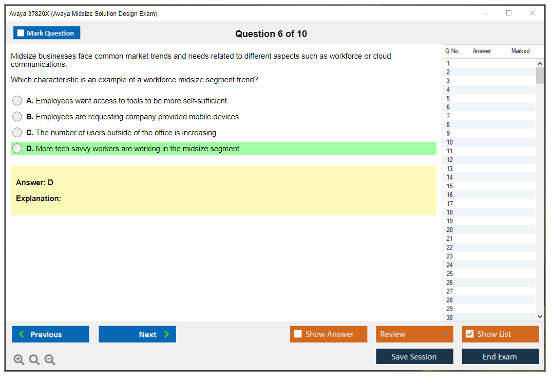 The Avaya 37820X (Avaya Midsize Solution Design Exam) is designed to validate the skills and knowledge of candidates in designing and implementing Avaya Midsize solutions.