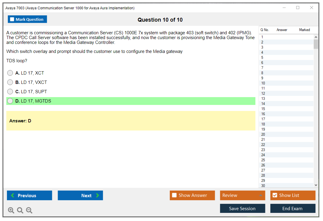 The Avaya 7003 exam is focused on the Avaya Communication Server 1000 and its integration with the Avaya Aura platform. It is intended for professionals who work with Avaya solutions and need to demonstrate their expertise in implementing and managing these systems.