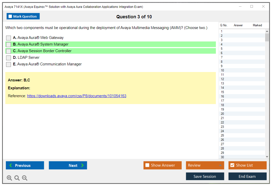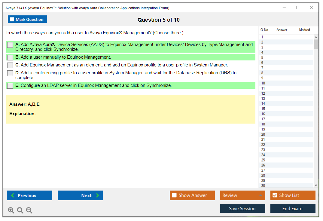 The Avaya 7141X (Avaya Equinox™ Solution with Avaya Aura Collaboration Applications Integration Exam) is designed to test your knowledge and skills in integrating Avaya Equinox™ with Avaya Aura Collaboration Applications. It assesses your ability to implement, configure, and troubleshoot these solutions.