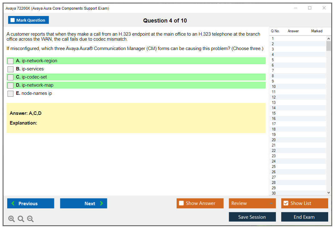 The question format of the Avaya 72200X Exam includes multiple-choice questions, drag and drop, and scenario-based questions.
