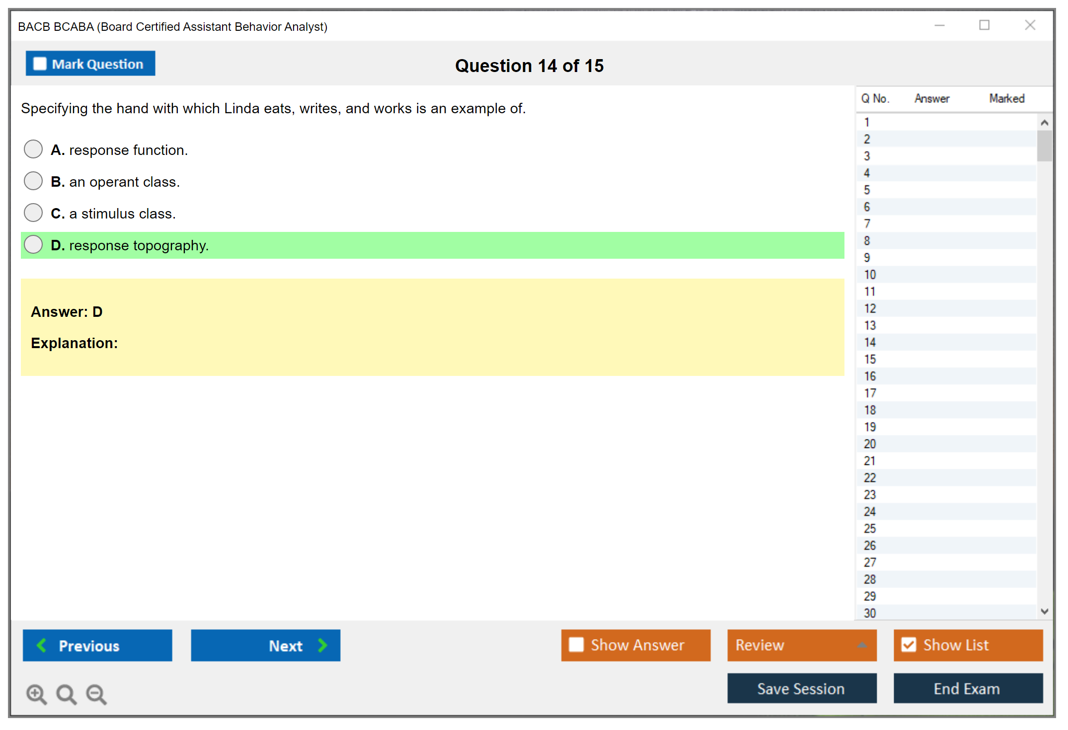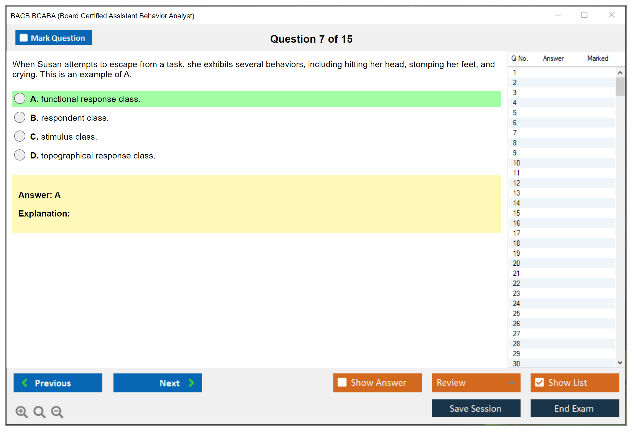 The question format of the BACB BCABA exam is multiple-choice, with each question having four possible answers.