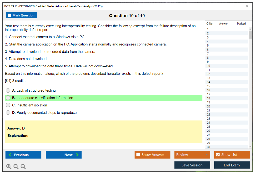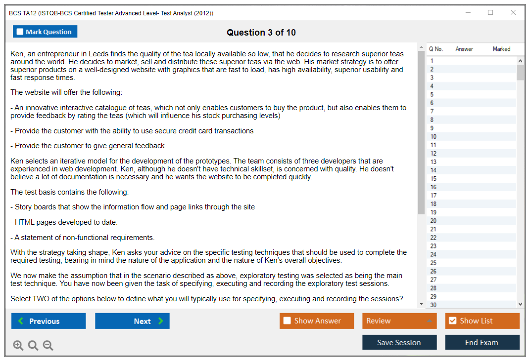 The BCS TA12 (ISTQB-BCS Certified Tester Advanced Level- Test Analyst (2012)) exam is a certification exam designed for individuals who have achieved an advanced point in their careers as software testers. It focuses on advanced testing techniques, test management, and analytical skills required to effectively perform the role of a Test Analyst.
