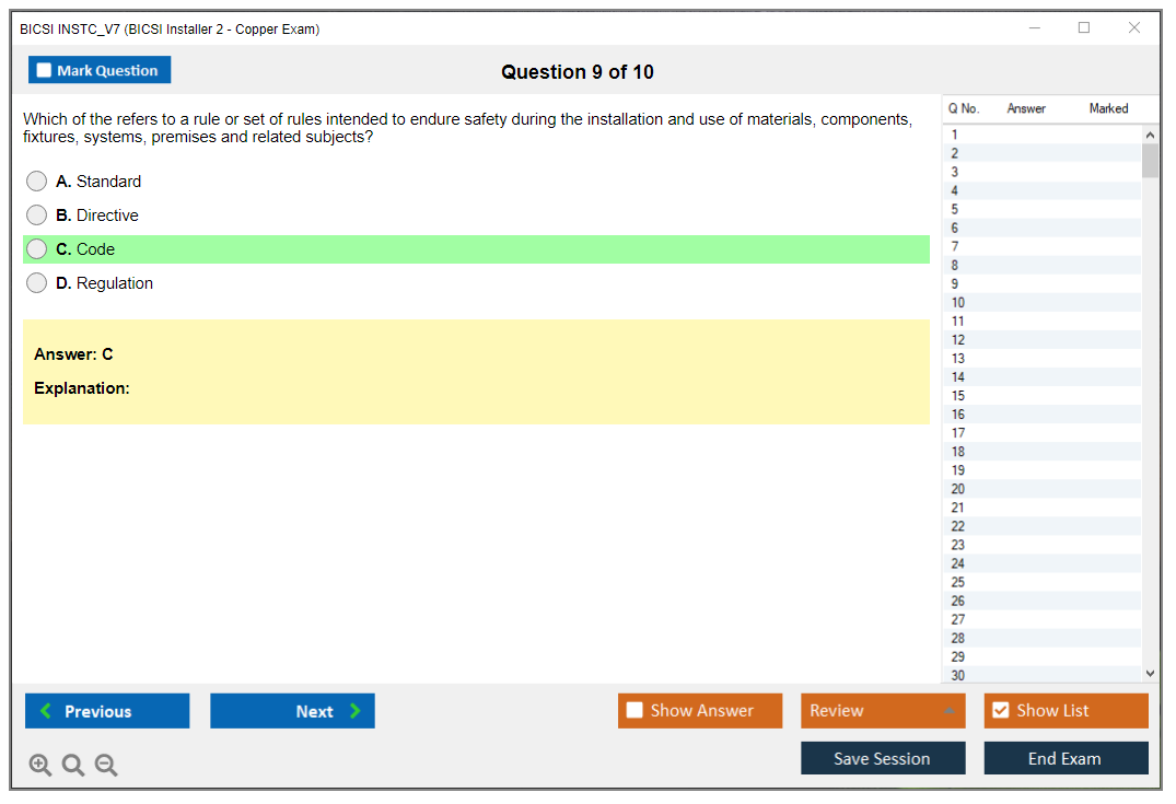 The BICSI INSTC_V7 Exam is designed to assess the proficiency of installers in the installation, termination, and testing of copper cabling systems. It is a part of the BICSI certification track for cabling installation professionals.