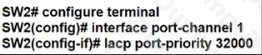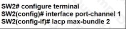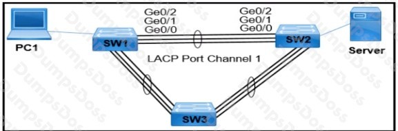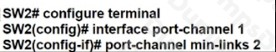 PC1 regularly sends 1800 Mbps of traffic to the server. A network engineer needs to configure the EtherChannel to disable Port Channel 1 between SW1 and SW2 when the Ge0/0 and Ge0/1 ports on SW2 go down. Which configuration must the engineer apply to the switch?