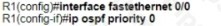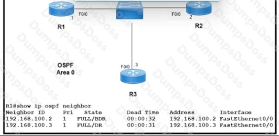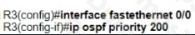Which two configurations must the engineer apply on this network so that R1 becomes the DR? (Choose two.)