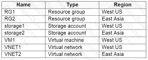 You have an Azure subscription named Subscription1 that contains an Azure virtual network named VM1. VM1 is in a resource group named RG1.