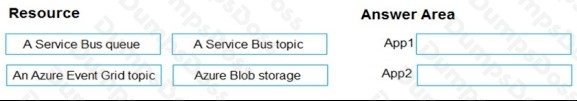 Which resource should you create for each web app? To answer, drag the appropriate resources to the correct web apps. Each resource may be used once, more than once, or not at all. You may need to drag the split bar between panes or scroll to view content.