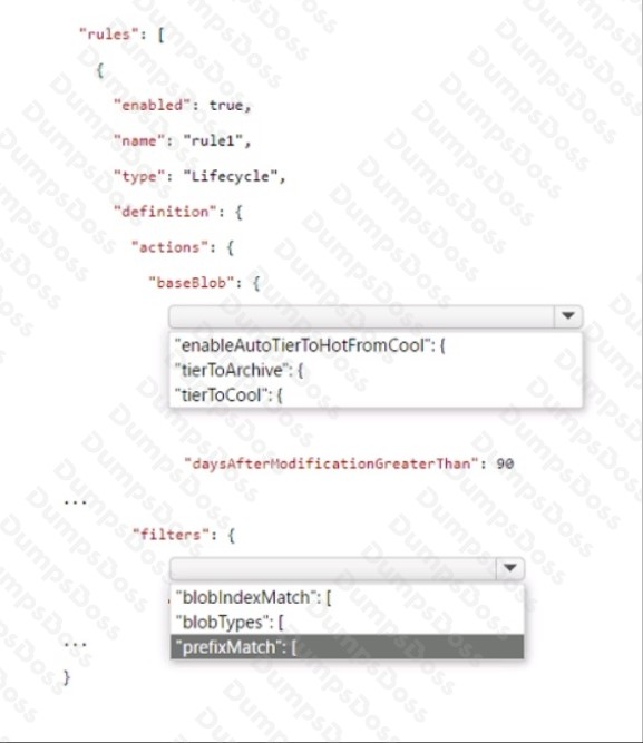 You to create a lifecycle management rule for storage' that will automatically move the blobs in container' to the lowest-cost tier after 90 days.