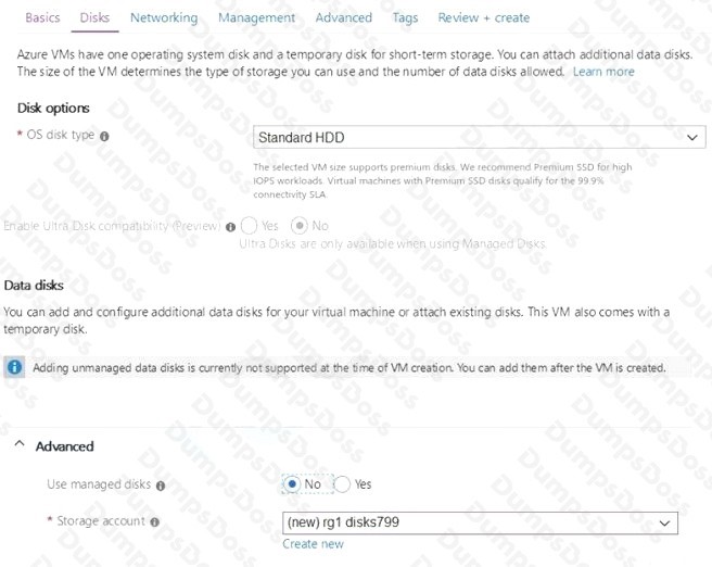 You plan to create an Azure virtual machine named VM1 that will be configured as shown in the following exhibit.