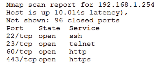 An Nmap scan of a network switch reveals the following:
