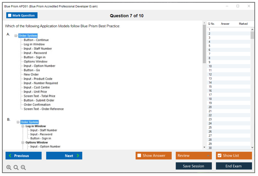 What is the Question Format of Blue Prism APD01 Exam?